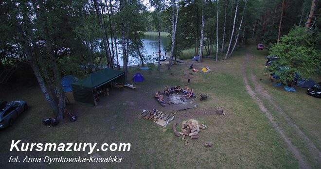 kemping u Adasia widok z drona Wendrusz Stowarzyszenie Historyczno Eksploracyjne Ziemi Węgorzewskiej Węgorzewo II rocznica powstania mazury biwak kemping u Adasia Jakunówko Krzywa Kuta ognisko spotkanie świętowanie nad jeziorem Kuty koncert ognisko czerwiec 2023 lato
