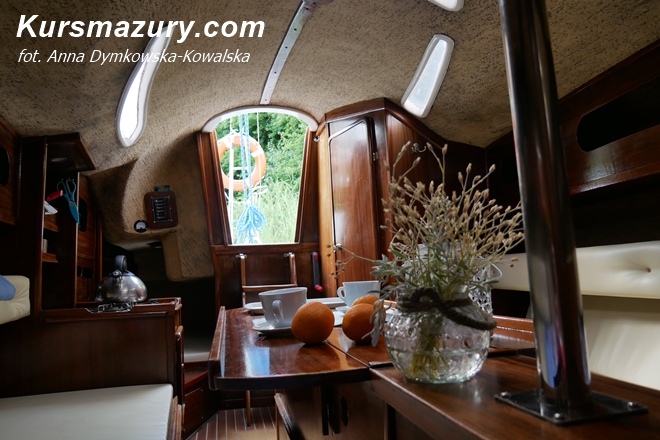 czarter jachtu twister 800 mazury giżycko kursmazury rejs żeglarstwo rezerwacja wynajem jacht żaglowy 8m czartery jachtów wynajem wnętrze na mazurach kursmazury szkolenia obozy Kisajno Niegocin jeziora wakacje nocleg na jachcie Jolly Roger wnętrze