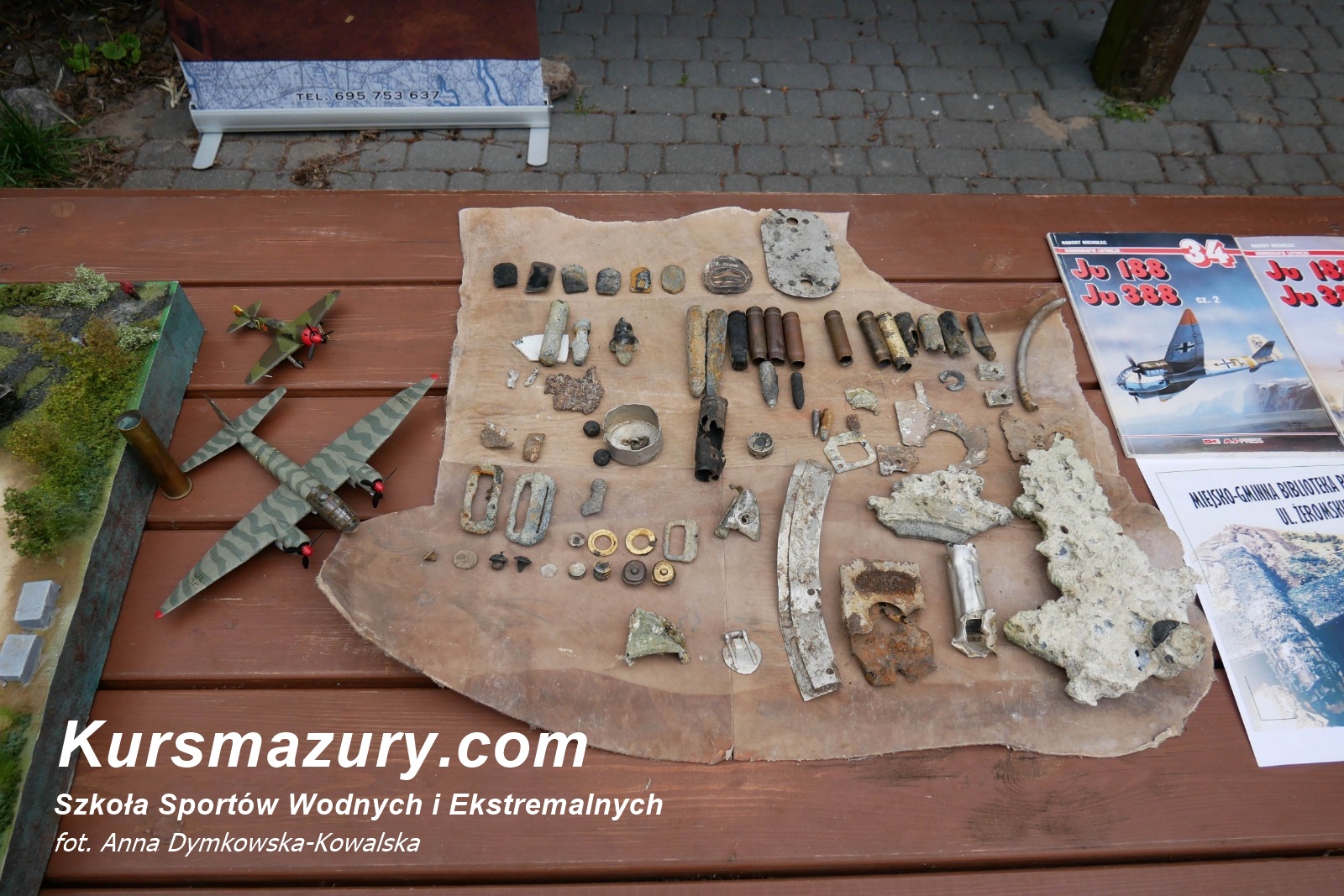 Znaleziska poszukiwań Kal junkers 188 mamry węgorzewo rybaczówka wrak samolotu ju 188 pod wodą zatonął wyciąganie nurkowie historia mazury wielkie jeziora mazurskie na dnie jeziora grudzień 1944 r załoga akcja Wendrusz stowarzyszenie muzeum makieta modele łuski w wodzie elementy samolotu znalezione tajemnice mazur nad jeziorem spotkanie kwiecień kursmazury QRS MAZURY rejsy szkoleniowe trasa czartery jachtów